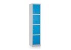 Kovová šatní skříňka - 4 boxy, 60 x 45 x 185 cm, otočný zámek, modrá - ral 5012