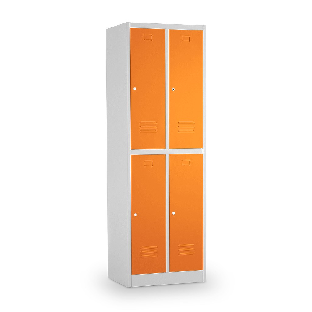 Kovová šatní skříňka - 4 boxy, 60 x 45 x 185 cm, cylindrický zámek, oranžová - ral 2004