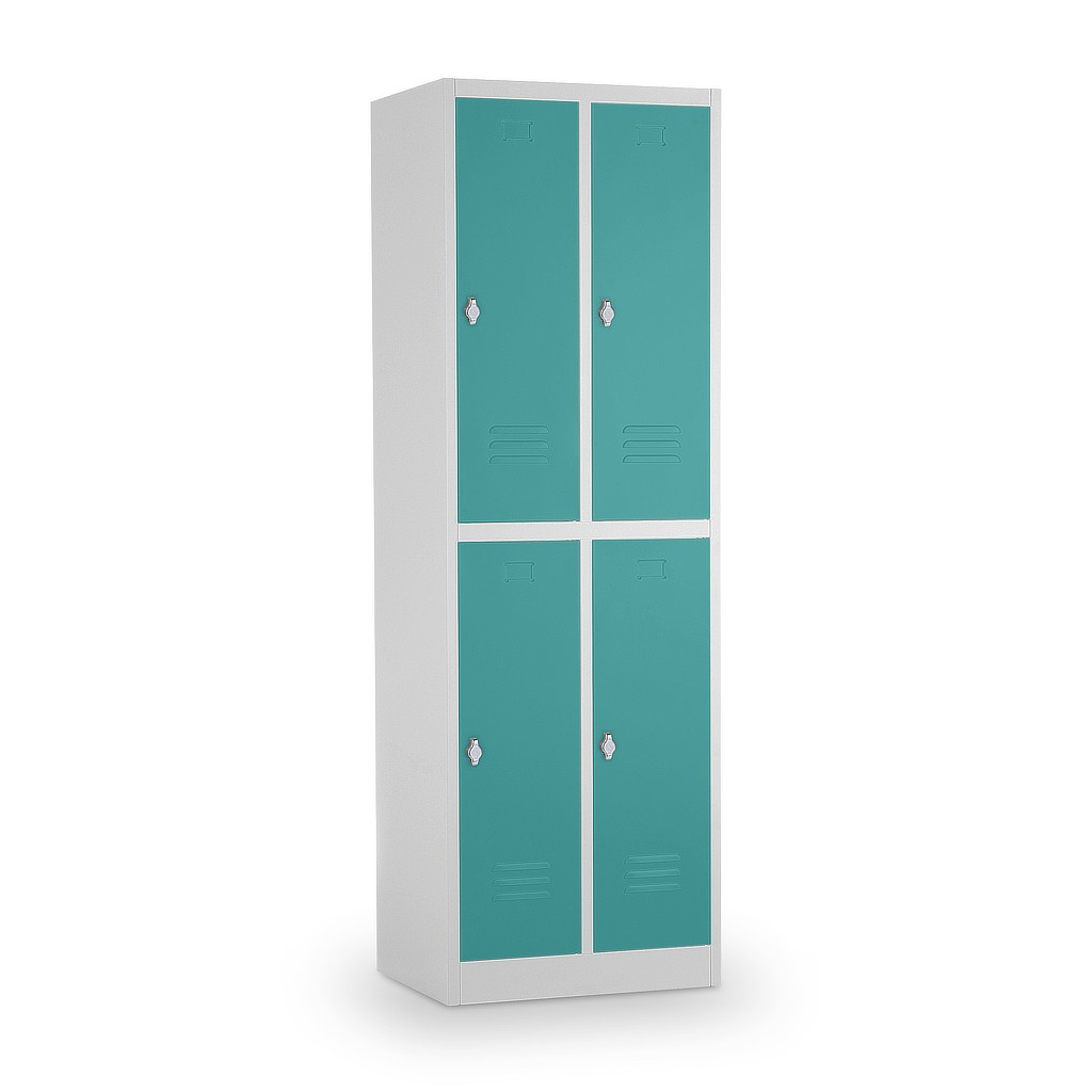 Kovová šatní skříňka - 4 boxy, 60 x 45 x 185 cm, otočný zámek, zelená - ral 6033