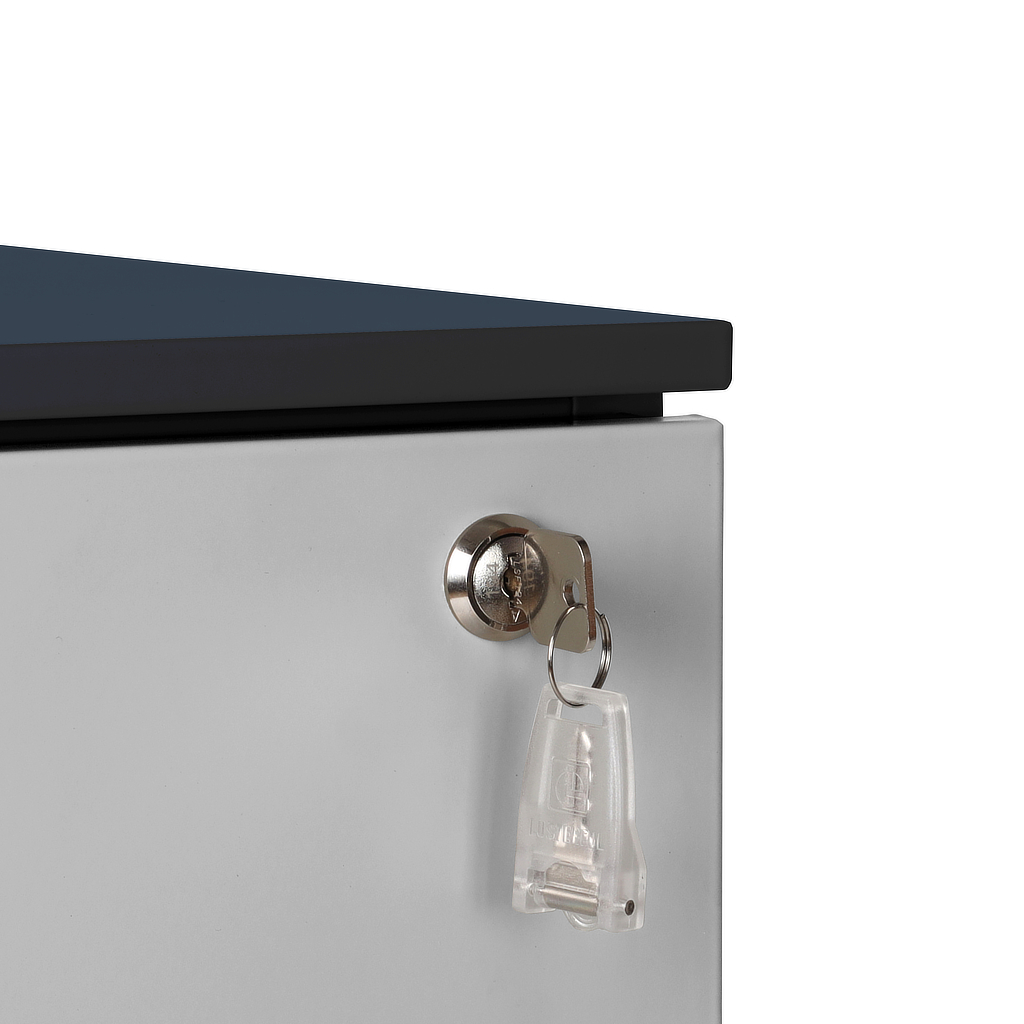 Skříňka je vybavená centrálním zámkem – odemčení a zamčení všech sekcí je otázka jediného otočení klíče.