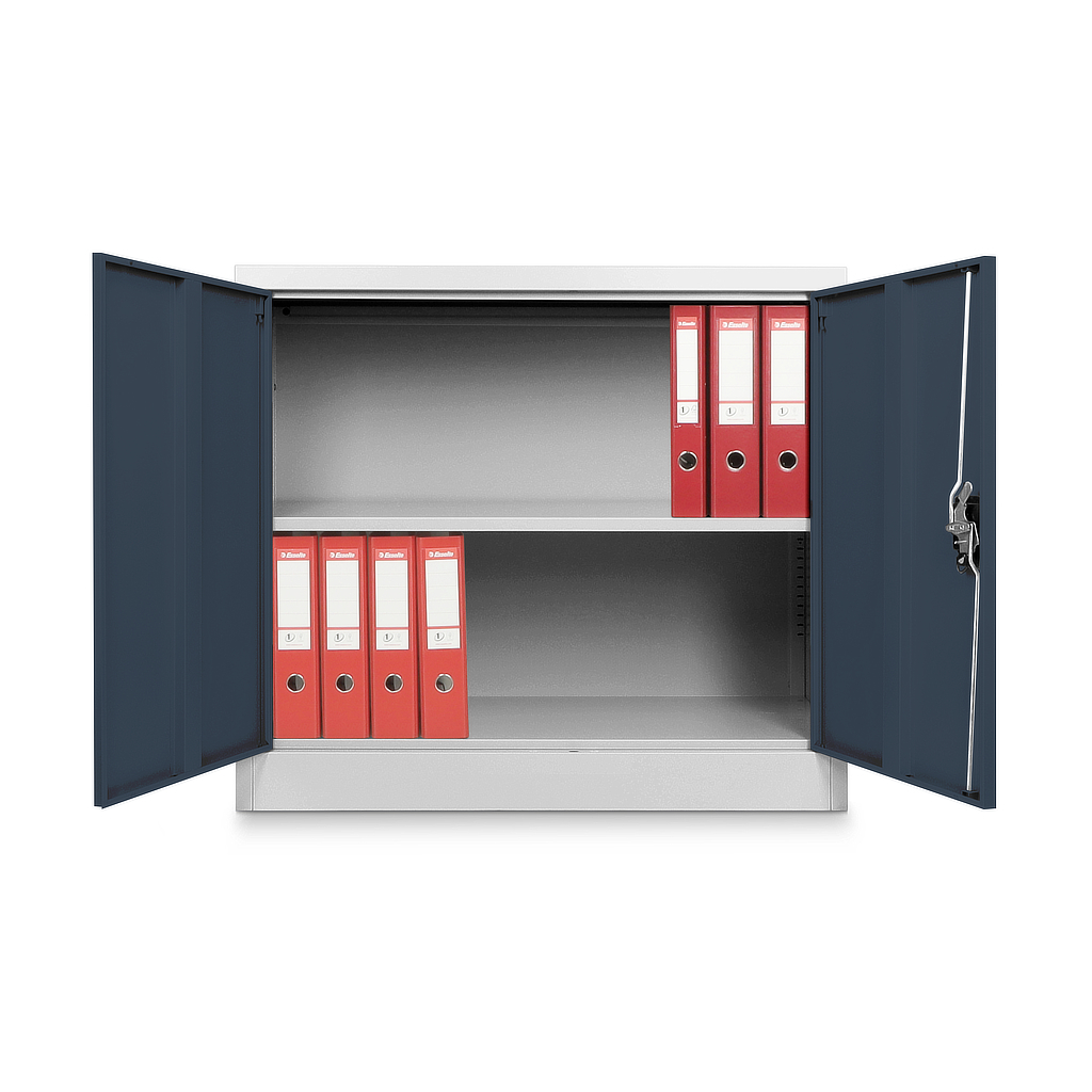 Nízká univerzální kovová skříň 90 x 40 x 80 cm, cylindrický zámek, antracitová - ral 7016