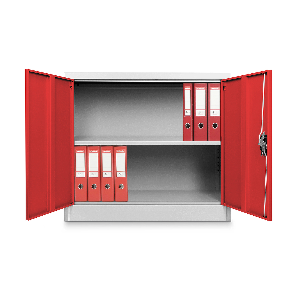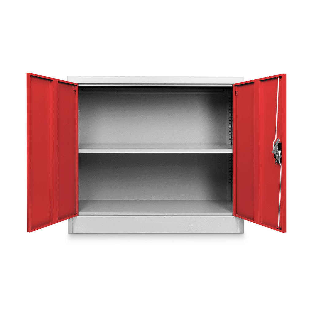 Nízká univerzální kovová skříň 90 x 40 x 80 cm, cylindrický zámek, červená - ral 3000