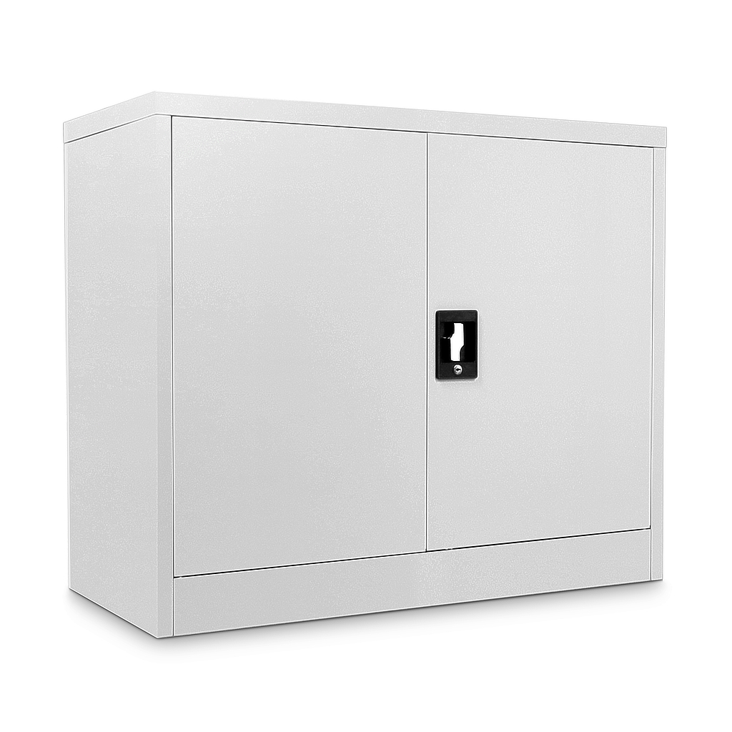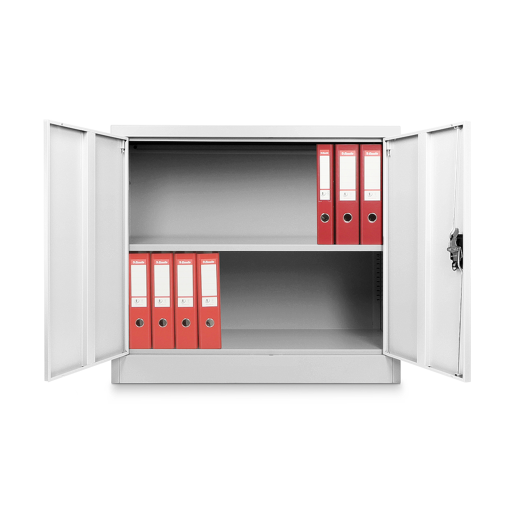 Nízká univerzální kovová skříň 90 x 40 x 80 cm, cylindrický zámek, šedá - ral 7035
