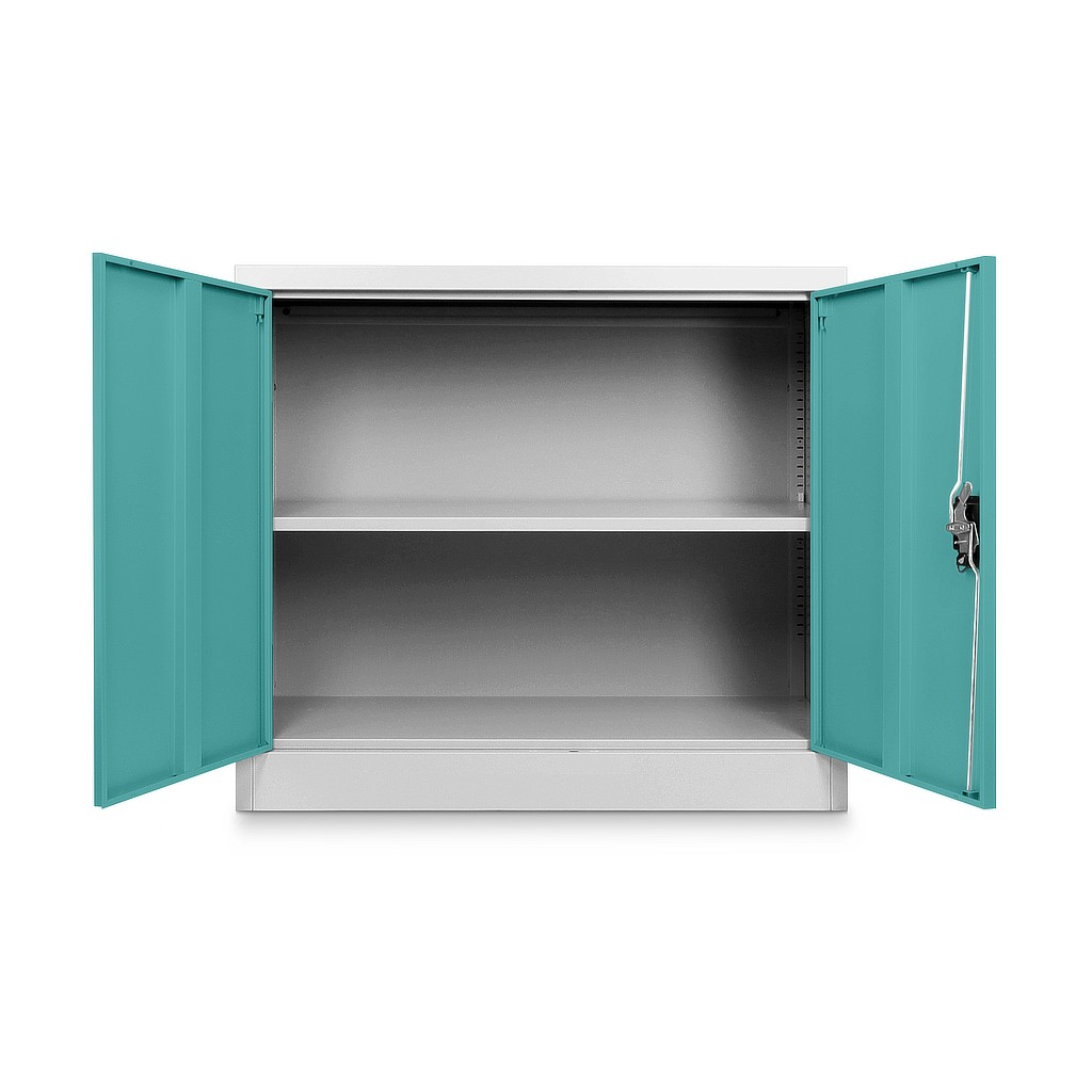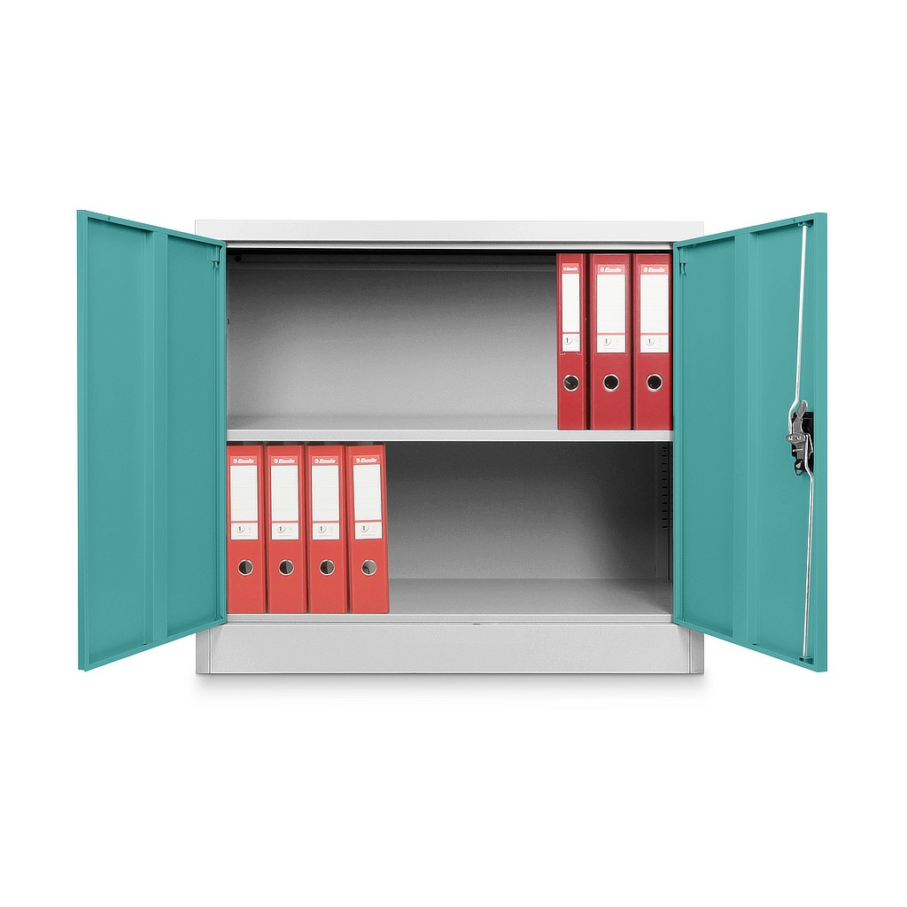 Nízká univerzální kovová skříň 90 x 40 x 80 cm, cylindrický zámek, zelená - ral 6033