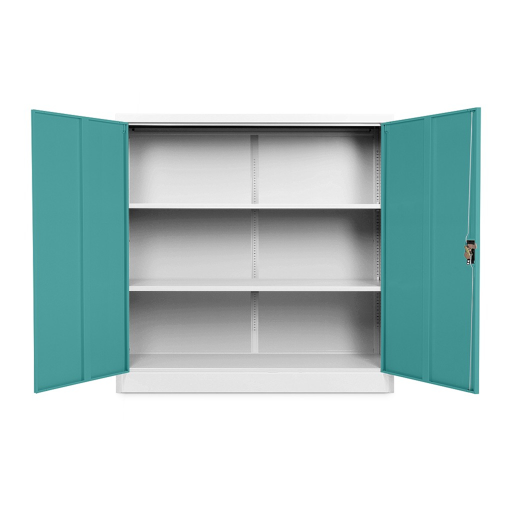 Střední univerzální kovová skříň 120 x 40 x 120 cm, cylindrický zámek, zelená - ral 6033
