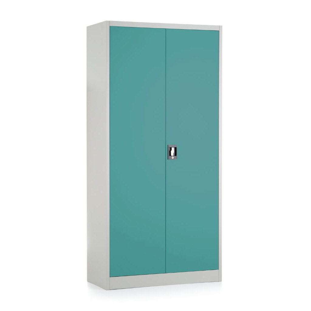 Konstrukce je vyrobena z pevného ocelového plechu a dodáváme ji v několika barevných provedeních dvířek. Jedná se o standardizované odstíny RAL. Korpus je u této varianty skříně v barvě RAL 7035 (světle šedá).