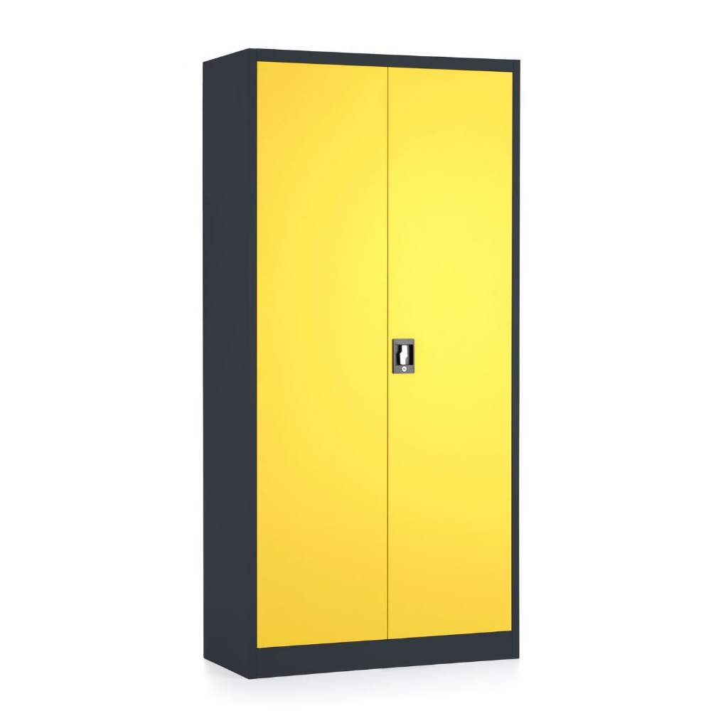 Konstrukce je vyrobena z pevného ocelového plechu a dodáváme ji v několika barevných provedeních dvířek. Jedná se o standardizované odstíny RAL. Korpus je u této varianty skříně v barvě RAL 7016 (antracitová).