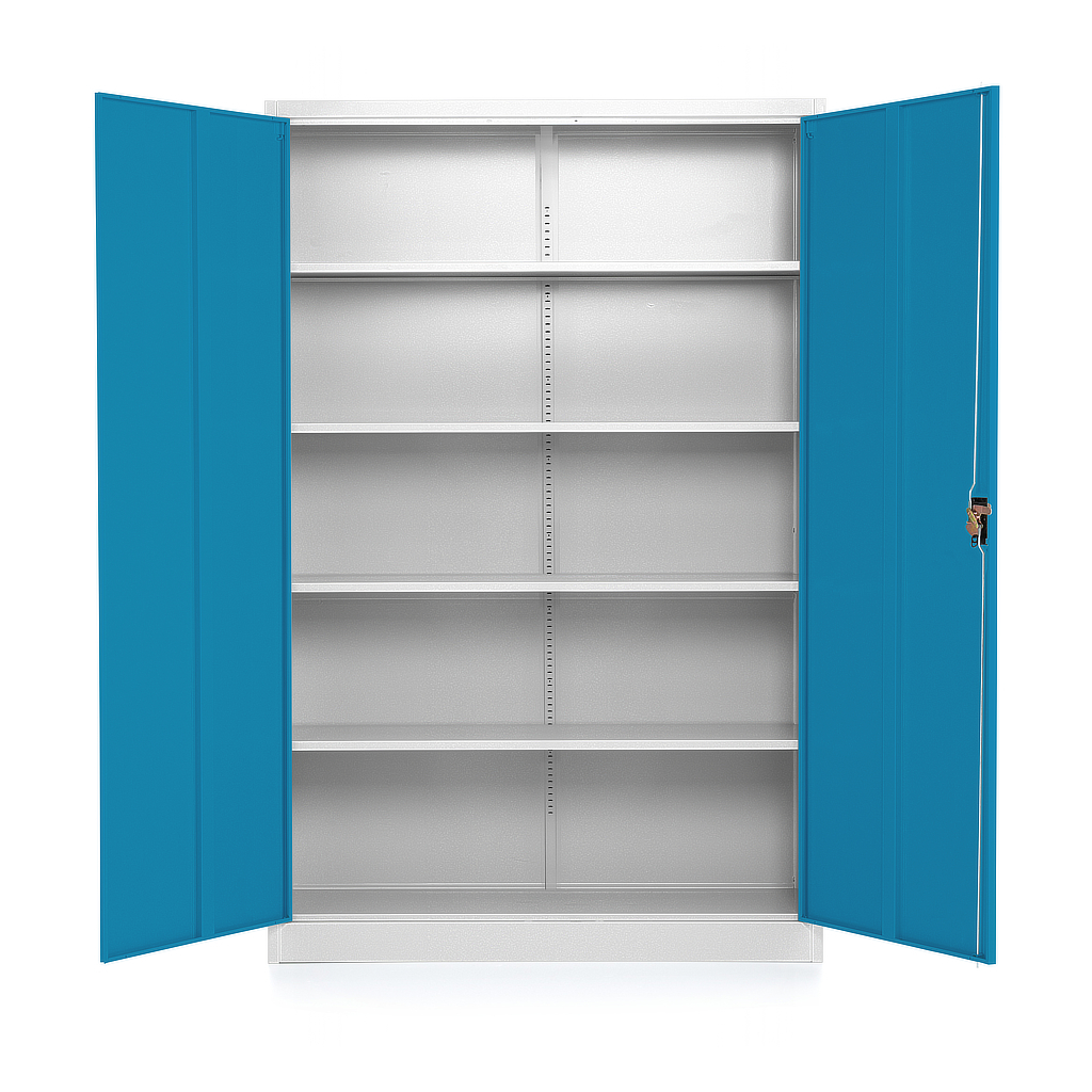 Univerzální kovová skříň 120 x 40 x 185 cm, cylindrický zámek, modrá - ral 5012