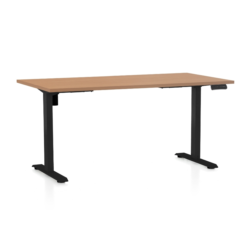 Výškově nastavitelný stůl OfficeTech B, 160 x 80 cm, černá podnož, buk
